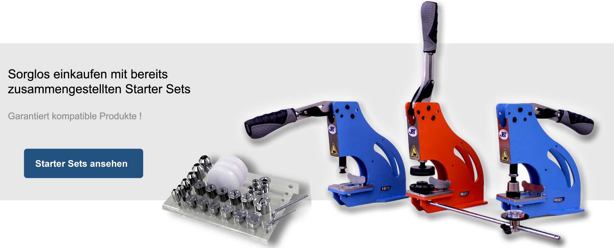 JS Trading bietet hochwertige Pressen für Ösen, Druckknöpfe, Nieten sowie zum Stanzen, Biegen, Prägen und Abkanten. Auf Wunsch entwickeln wir auch Sonderlösungen. Entdecken Sie unsere Auswahl oder kontaktieren Sie uns direkt.